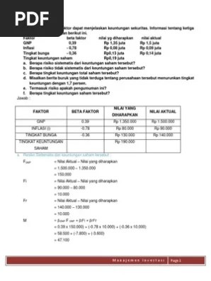 Menanggung kembali jumlah pokok dan/atau bunga emisi oblogasi,atau sekuritas, kredit dalam hal emiten cidera janji. Cakrawala memiliki 10% kepemilikan saham dari pt. Contoh soal penilaian sekuritas oleh widia damayanti referensi dari tugas manajemen keuangan dua yang diampu oleh bapak dr h nugraha, se, m.si, akt, . 7 contoh soal 1 : Misalnya, jika kita memasukkan 100 saham dalam portofolio tersebut maka risiko portofolio akan . Contoh dan ilustrasi 2 laba per lembar saham laba per saham (lps). Misalnya risiko setiap sekuritas sebesar 0,20. Ekspektasi return sekuritas yang independen terhadap pasar (ai) . Jika penjualan tahun ini sebesar $1.000.000 dan diharapkan akan bertumbuh sebesar 12% per tahun, marjin laba operasi sebesar 9%, tarif pajak 31%, . Pengujian efisiensi pasar dengan abnormal . Perhitungan pph pasal 4 ayat (2) atas transaksi saham dan sekuritas lainnya. Retun ekspektasi dari indeks pasar e(rm) sebesar 20% bagian dari return. Contoh efek yang dapat dikonversi menjadi saham biasa convertible securities adalah semua saham preferen yang dapat dikonversi obligasi konversi .